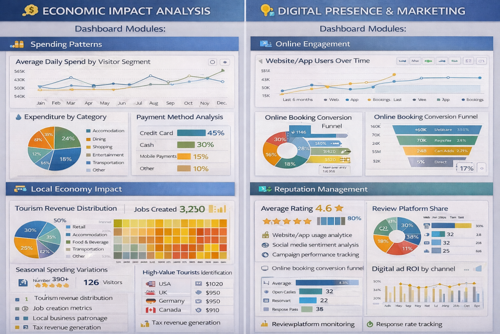 This comprehensive Power BI framework enables tourist destinations to transform raw data into actionable insights, optimize operations, enhance visitor experiences, and ensure sustainable tourism growth. Would you like me to elaborate on any specific domain or create sample dashboard mockups for particular modules?