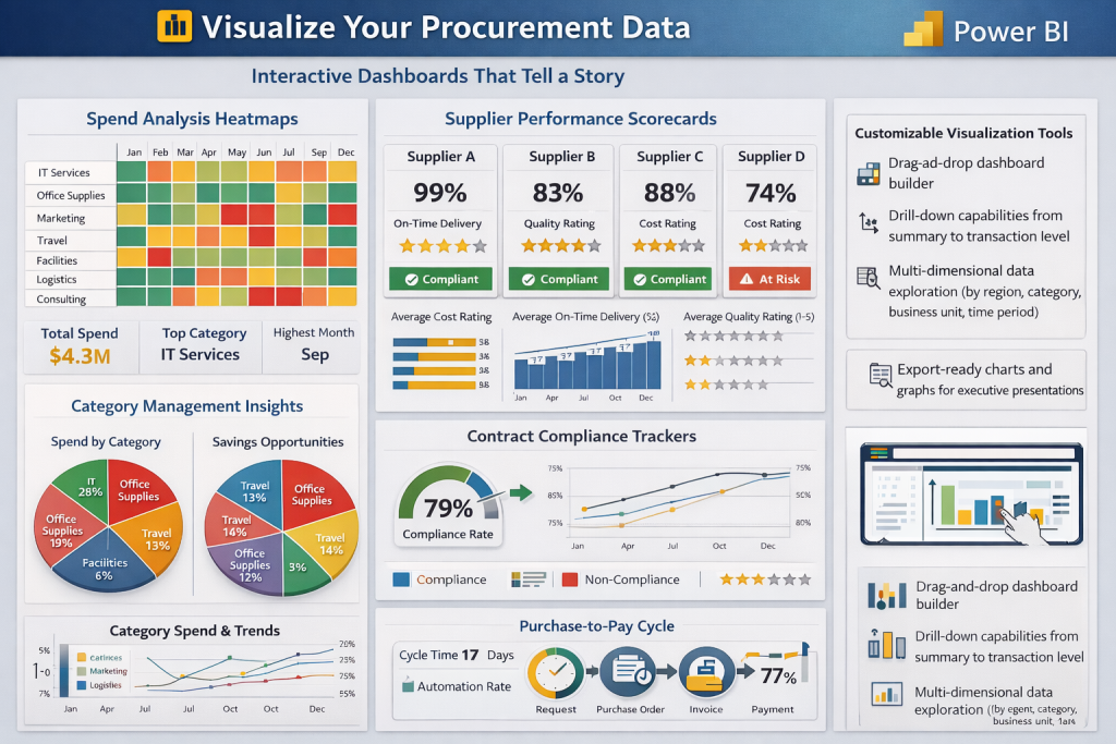 Move beyond static spreadsheets and fragmented reports. Our Procurement Analytics platform transforms raw purchasing data into strategic intelligence that drives cost savings, improves supplier performance, and optimizes procurement operations.